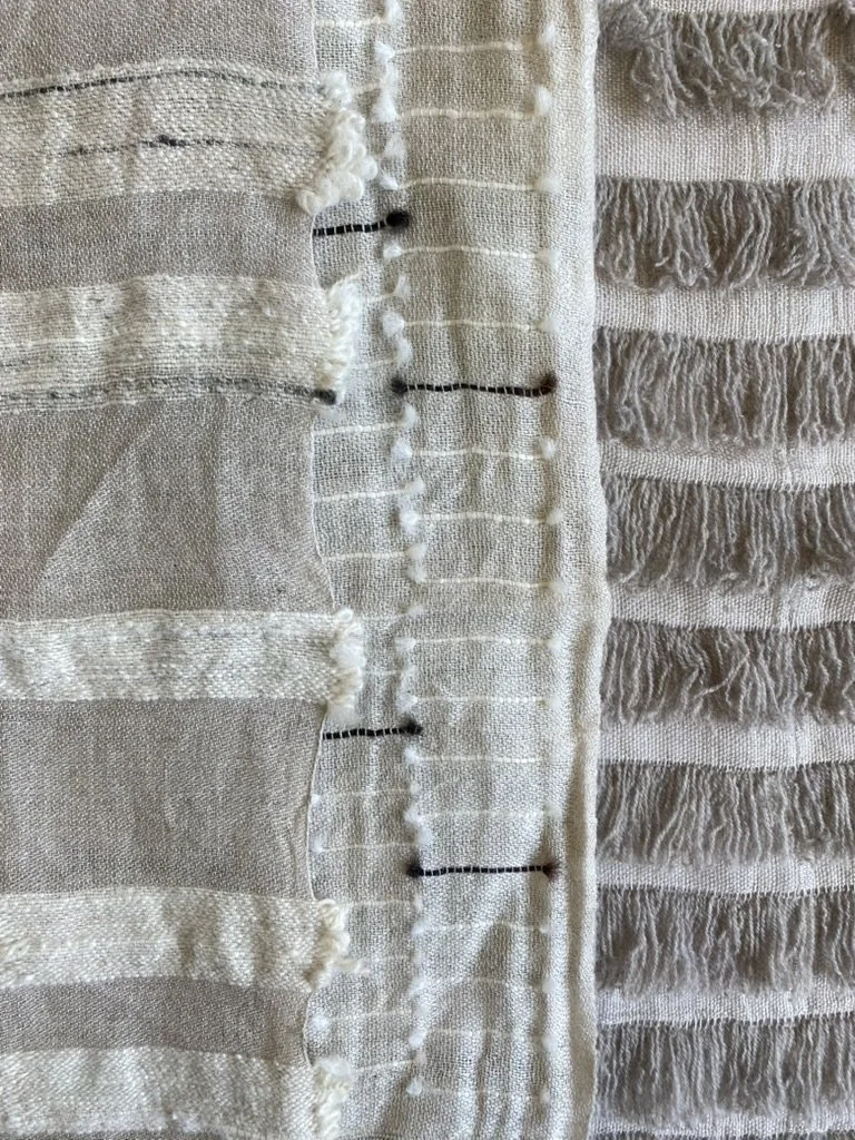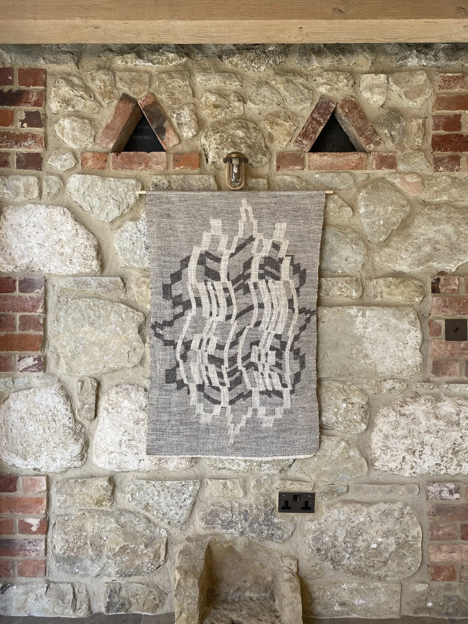 Scarlett collected wasted fleeces from farmers in Surrey and Sussex , processing them herself and hand spinning into yarns using a traditional ashford spinning wheel. She created a collection of over 30 fabrics all handwoven using natural fibres.